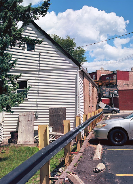 This vernacular workers cottage with a bay window, part of a row of structurally identical homes with divergent alteration and upkeep histories in McKinley Park, sat across the street from the longstanding New Archview Restaurant. The family that owns the restaurant purchased the house in 2013.